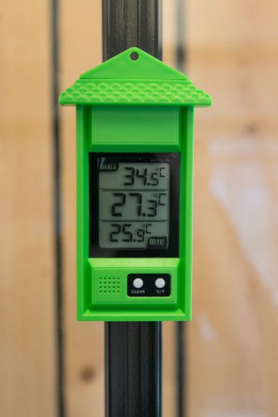 maxima. Deze thermometer toont zowel de minimumtemperatuur als de maximumtemperatuur van een bepaalde periode in de kas.