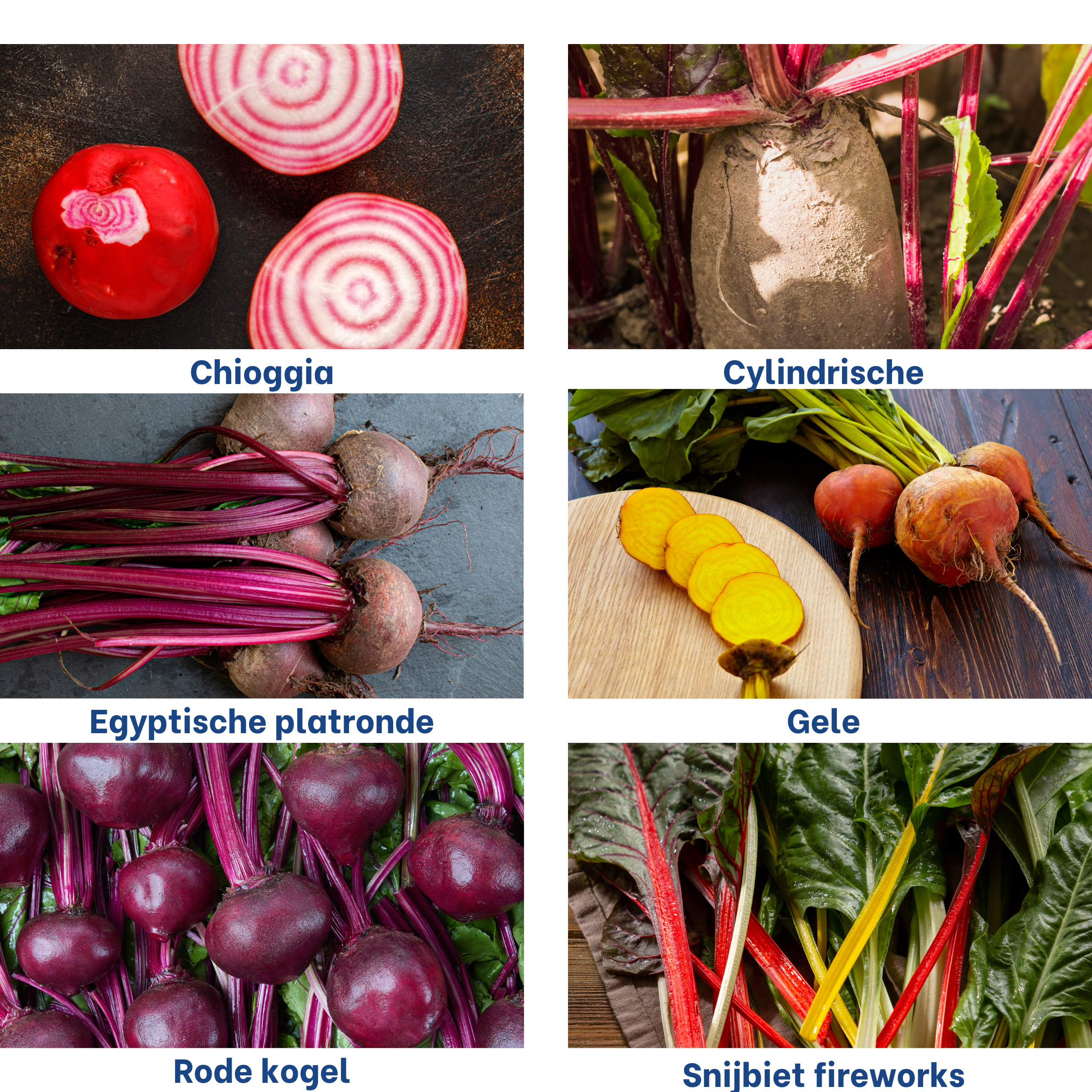 Ontdek deze unieke bietenmix met 6 verschillende soorten zaden in één set, perfect voor een gevarieerde oogst vol kleur, smaak en verrassende variatie in je moestuin!