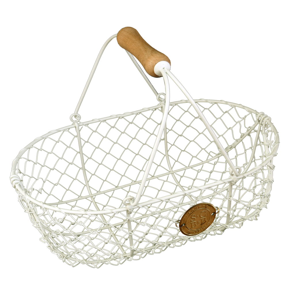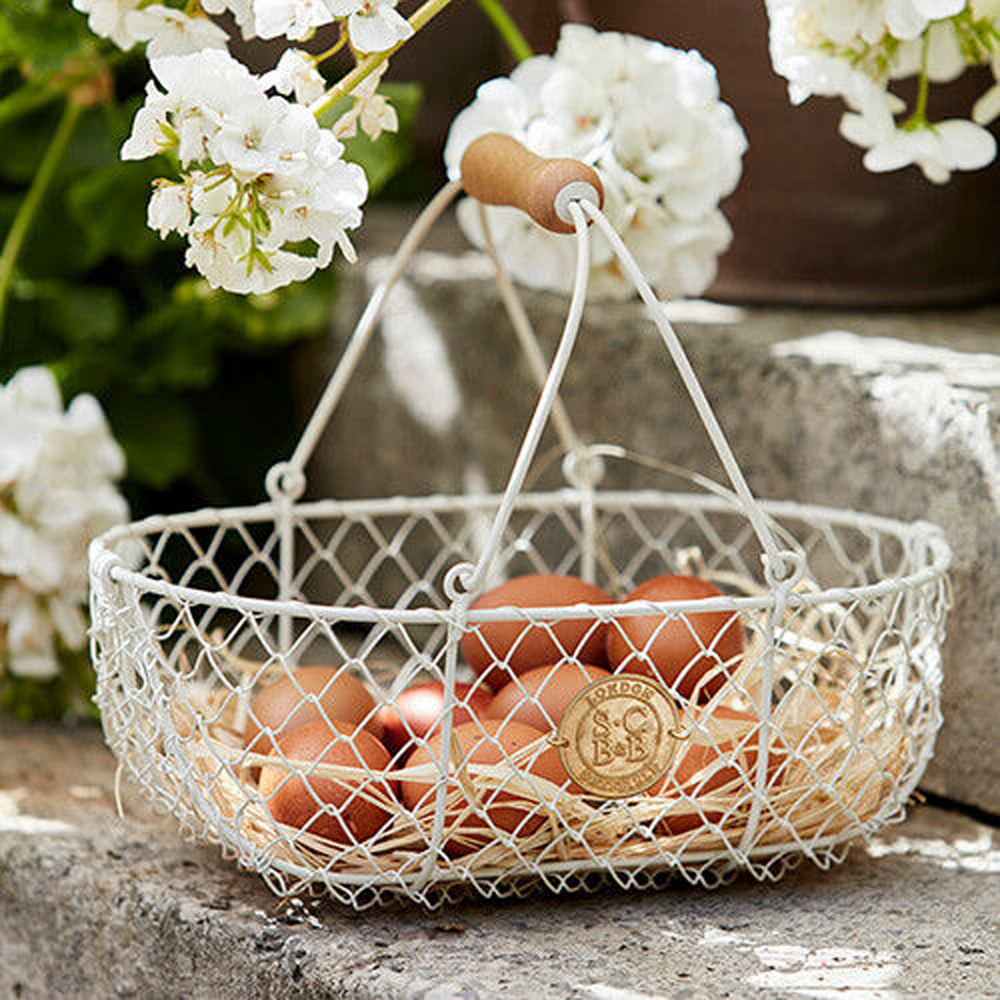 Neem je groentes mee in dit handige oogstmandje, gemaakt van stevig metaal. Het crème kleurige metaal is een mooie combinatie met de houden handgreep.