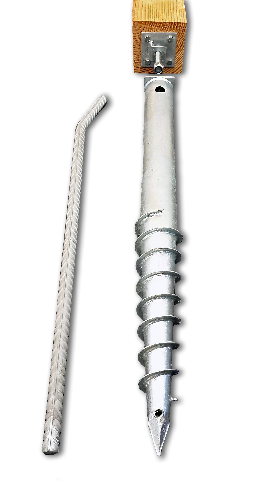 Een schroeffundering is verkrijgbaar in verschillende lengtes en diameters. Type en lengte worden bepaald aan de hand van de grondsoort en het te plaatsen bouwwerk.